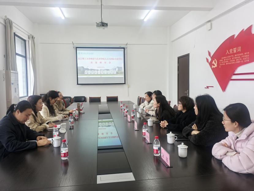为加强校际学科教学交流合作,分享英语专业建设与教学的实践经验,2026年3月27日下午,浙江理工大学科技与艺术学院人文与国际交流学院英语专业负责人董洋萍带领骨干教师一行6人到访我院文学院,开展英语专业建设与教学专题交流研讨。我院文学院副院长徐国红、英语专业主任邓琳及英语专业骨干教师邵素玲和崔颖等热情接待并参与交流,双方围绕学科建设、教学实践等核心议题展开深入探讨。