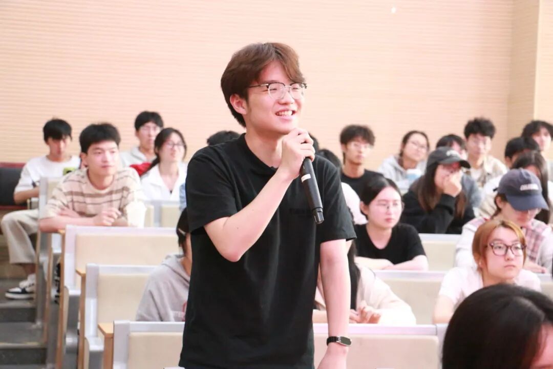 黄遐校友答:汉语是“传道”的艺术,蕴含着极简主义的智慧。比如“冰”和“箱”结合是“冰箱”,虽是简单的组合却能精准地表达出其意思。又比如同音“人”字的“仁”,意为“人心中要装着别人”,单字看似简单,实则暗含着立身行事的根本。而这汉字中蕴藏的丰富文化底蕴和人生道理,便是让我们脱颖而出的绝技。其次,要了解自己。设计人生,要敏锐地发现自己的天赋与使命,唤醒内心深处的欢喜。最后,是传承文化。中国文化的永恒性和骄傲,来自深入骨髓的精神。它一直鲜活地传承在我们身上。每个人都是作家,终身都在教育自己、影响他人,我们在人生路上书写的,就是自己最好的作品。